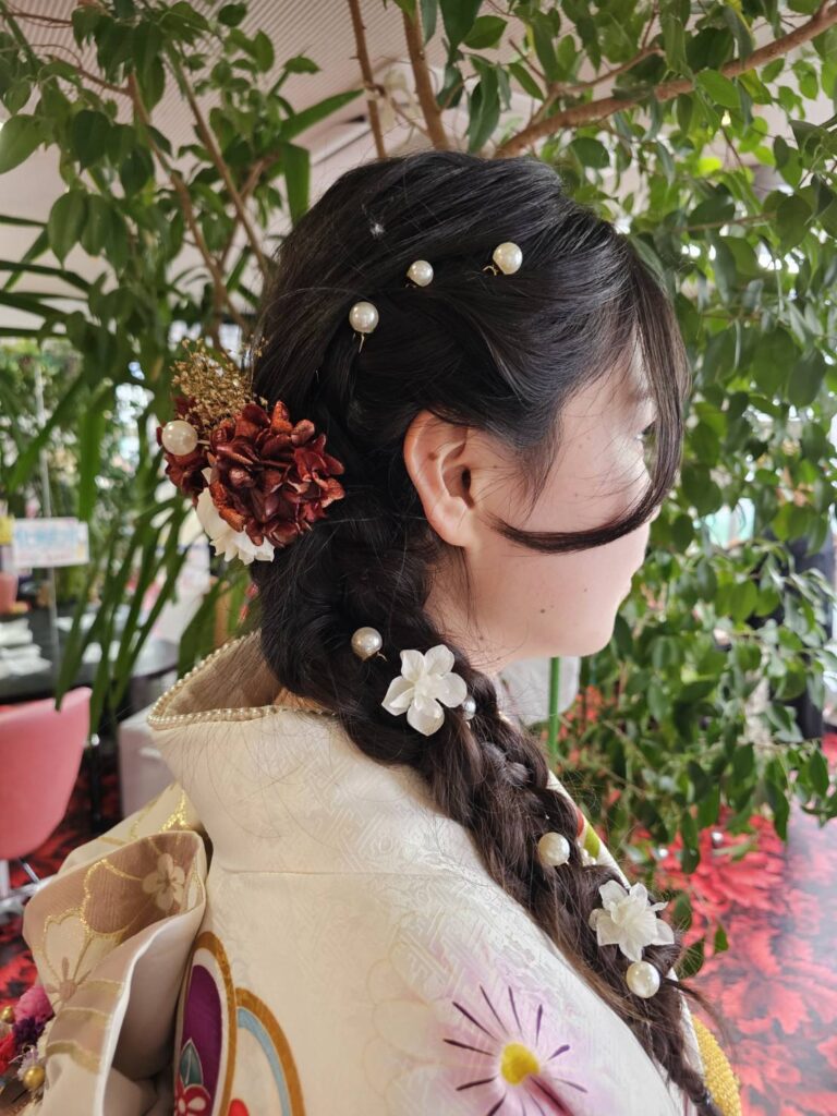 髪を斜めに編み下ろして、こなれた雰囲気を醸し出す🌟