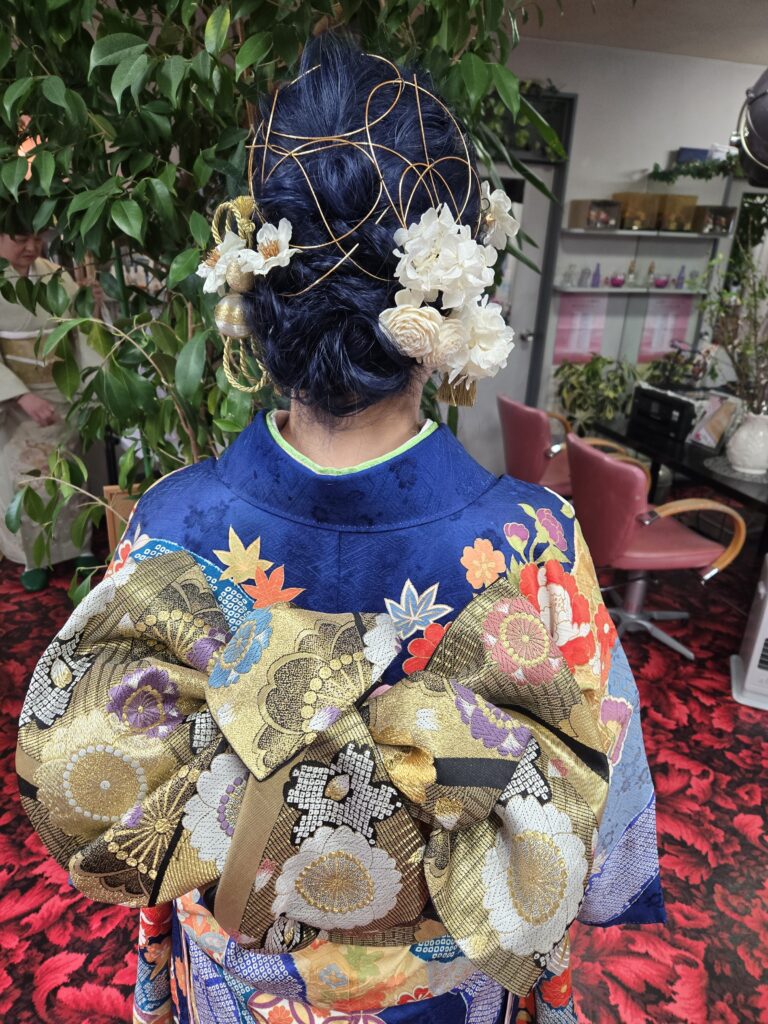 帯結びは華やかにひだを重ね、めでたくアレンジ🎀