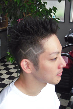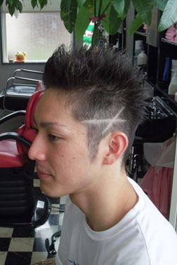 刈り上げた両サイドにワイルドにラインを入れ、トップを残したモヒカンスタイル♪