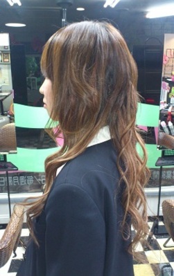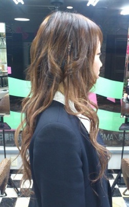 ショートのスタイルから、あっという間にロングスタイルに大変身!! 色は3種類の色の毛束をミックスしてつくっていますが、地毛の色ともマッチしていて、 とってもナチュラルです。ショートもモチロンですが、ロングもカワイくてとても似合います(^_^)v