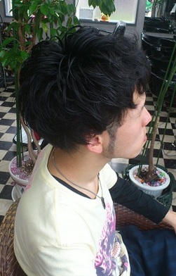 トップは軽めに、アンダーにはやや重さを残し、全体的にゆるめにパーマをかけ、えり足・サイドはスッキリツーブロックにして、軽やかに仕上がっています!毎回とってもオシャレなお客様とスタイルを考えて、さらにイケメンになるのが楽しみです♪