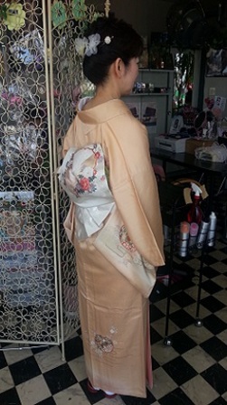 素敵なお着物があってもなかなか着る機会のなかったお客様♪ せっかくなので今回は、娘さんと2人、お着物でのお呼ばれです!明るいお着物の色味も上品な帯の柄も、モダンに仕上がったアップスタイルとお似合いで、とても華やかになりました!お着物がと~ってもお似合いなので、もっともっと着物を着る機会が増えるといいですね(^_^)