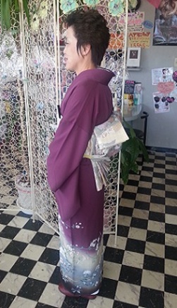 笑顔がとっても素敵なお客様♫ 今日は事前の着物選びで着たらお客様にピッタリ☆第一印象で決まった、紫のお着物でのお呼ばれです♪ 髪はカールをつけて後ろに流し、パールを散りばめて華やかに、変わり結びでより華やかに、お客様の笑顔でなお一層華やかに☆360°どこから見ても素敵です(^m^)