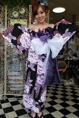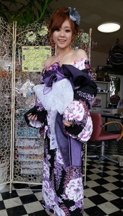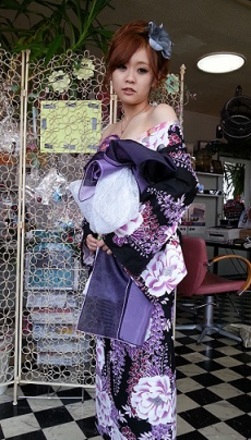 今宵は、お祭り。花魁風の浴衣で、色っぽさと、かわいらしさが魅力的です。楽しんで、行ってらっしゃい♪