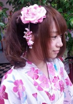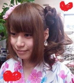 今日はお友達と、浴衣&セットで、夏の夜を彩る花火大会へ♪♪ツインンテールでリア中!!とても可愛く似合っています(^^♪