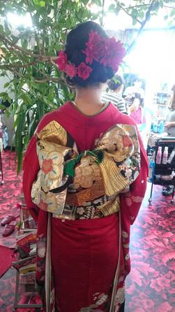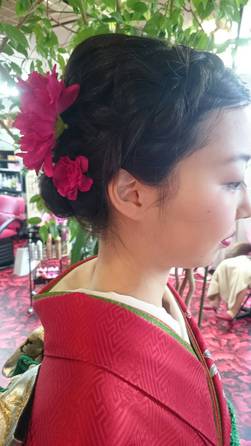 成人式はやっぱり赤!!赤の振袖がとっても似合うお客様♪サイドに編み込みを入れて可愛さをプラスしました。帯は蝶文庫系で左右に広げた羽根がひらひらと舞う蝶々のように仕上げました!未来へはばたく新成人にぴったり♡