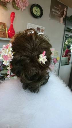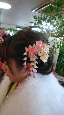 思わず目が釘付けになっちゃう♡ルーズに崩したロープ編みがポイント☆ピンクのつまみかんざしがおしゃれ。