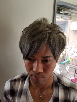 前髪は長めにサイドは6mmのバリカンで刈り上げました☆360度どこから見てもおしゃれなシルエットになっています。ブルーアッシュ系のカラーで透明感をプラスしました。