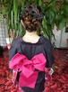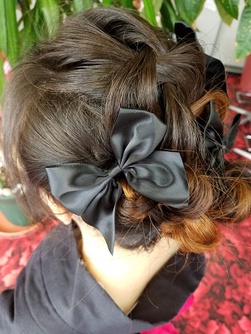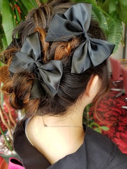大人っぽい黒の浴衣に黒のリボンの髪飾りをプラスして可愛さアップ♥浴衣美人!