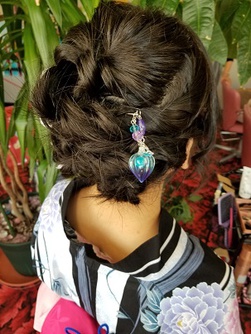 ブルーのかんざしがとてもオシャレ