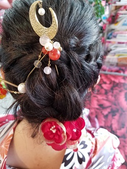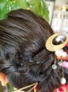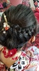 編み込みしてまとめました。後ろから見ても可愛い!飾りのさし方も工夫しました♥