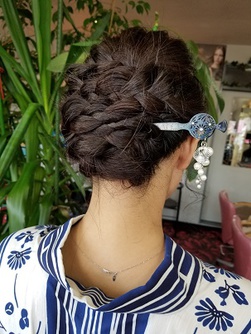 編み込みを崩さずまとめました。シンプルなので落ち着いた雰囲気に・・★後ろ姿に釘付けです♥