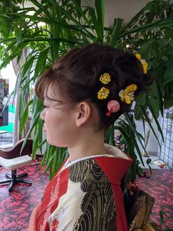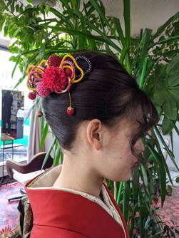 後ろは夜会巻きでスッキリあげてエレガントに仕上げました♪かんざしをさすことで大人っぽさアップです♡
