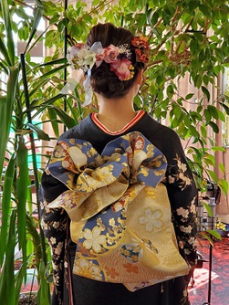 ゆらゆらと揺れ動いて存在感を主張し華やかさを感じさせてくれる帯結びです。
